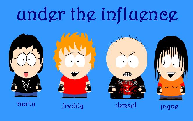 under the influence are a brand new band made up of 4 of my realy close friends. i haven't had the opertunity to hear them yet but i know one of thier songs off by heart as i gave the starting line for it to freddy and helped to write the words to it down! this should be an very interesting band as all the members are pretty much influenced by many different things to each other, so if all of this rubs of onto each other and a mix of influences are put into the sound of the band, they're gonna be the most original, unusual and completely amazing band ever to walk the north east!!!!!!!! i will await seeing them with great aticiption!!!! good luck guys! members